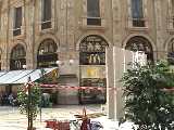 ドゥオーモで地下鉄を降り、ガレリアの突き当たりの、ダヴィンチ像の右側、スカラ座(写真)の左前にあるイタリア商業銀行本店(写真)で、18万円を両替した。(パスポートが必要)